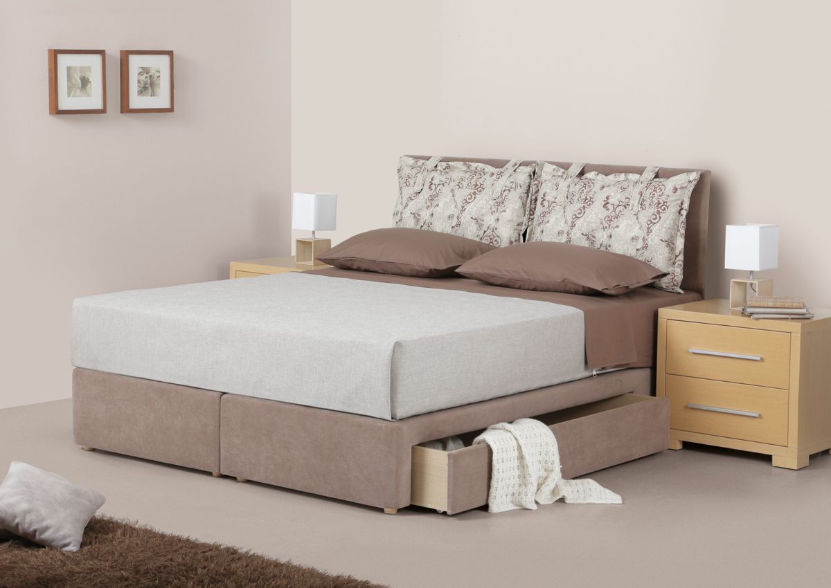 In the dimension 150cm (width) and above it is available with storage space on both sides